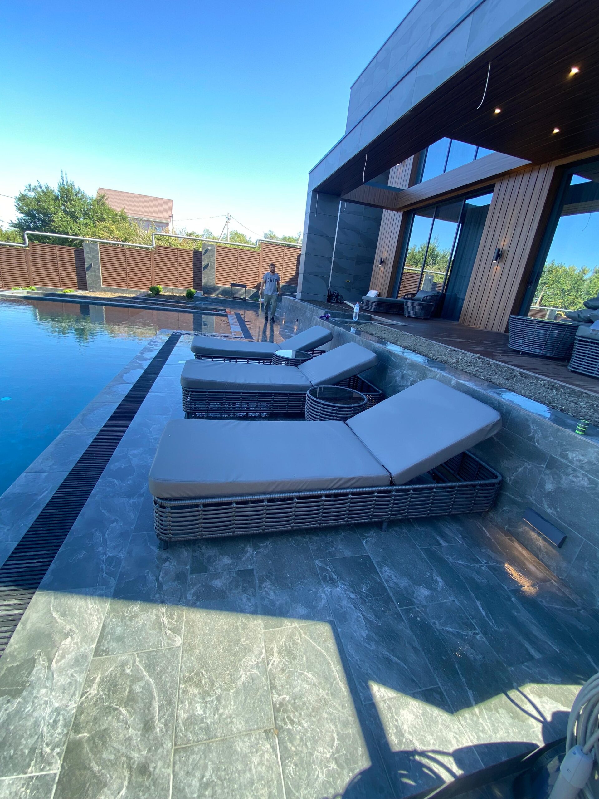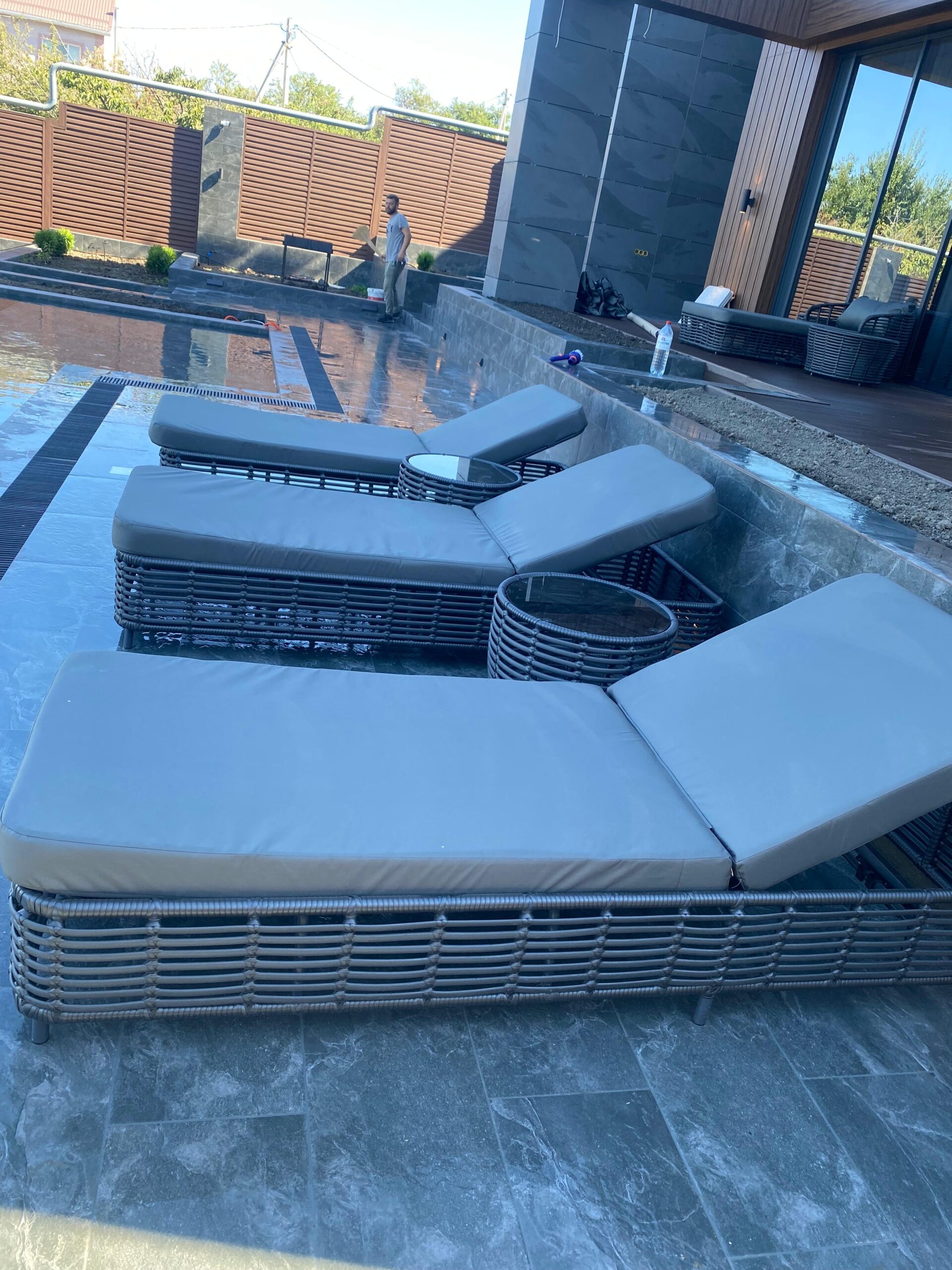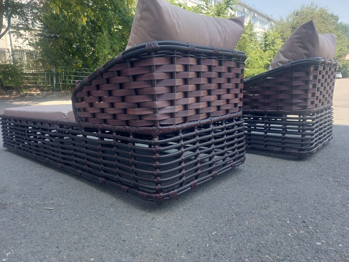 Дизайнерский шезлонг из искусственного ротанга Ш-030 оригинальной формы в комплекте с круглым столиком. Столешница выполнена из закаленного стекла с прозрачной тонировкой. Огромный выбор видов и цветов ротанга. При производстве шезлонгов используем ротанг российского производства высокого качества. Возможность изготовления шезлонга и столика по Вашим размерам. При изготовлении шезлонгов и столика используем цельносварной алюминиевый каркас, что обеспечивает легкость изделия. Вы самостоятельно можете переносить шезлонг и столик. Каждый каркас обработан антикоррозийным составом, что позволяет хранить шезлонг и столик из ротанга на улице круглый год. Мебель из ротанга не боится погодных условий, осадков и перепадов температур, поэтому срок использования шезлонга и столика из ротанга длительный. Ручное плетение. Ткань для матраса и подушек используем влагоотталкивающую. Гарантия качества. Гибкая система скидок.